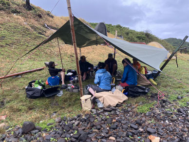 このあと風はおさまりテントを床べったりに張ったタープの下に隠して泰志くんのテントに避難。