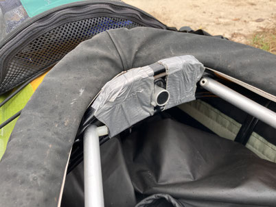 泰志くんのテントもポールを支える床が突き抜けてしまっていた。